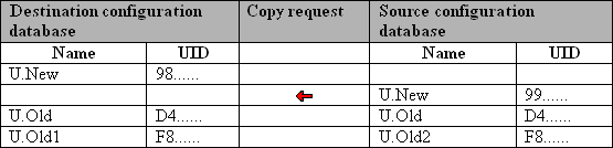 This type of copying is the simplest one. An object from source configuration database is copied to destination configuration database.