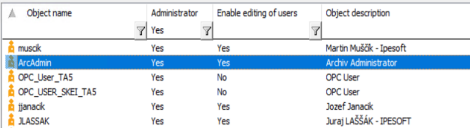 These access rights are a configuration that is created by the D2000 administrator by creating an Object group, for example, Quality, and assigning this object to certain users for reading/controlling or modifying, and then the software determines who is logged in and the level of their access rights to the given Quality group. All/selected users can be exported to XML, and their assigned groups and access rights viewed/extracted. However, this can be a large amount of data, and knowledge of what the specific group means is needed.