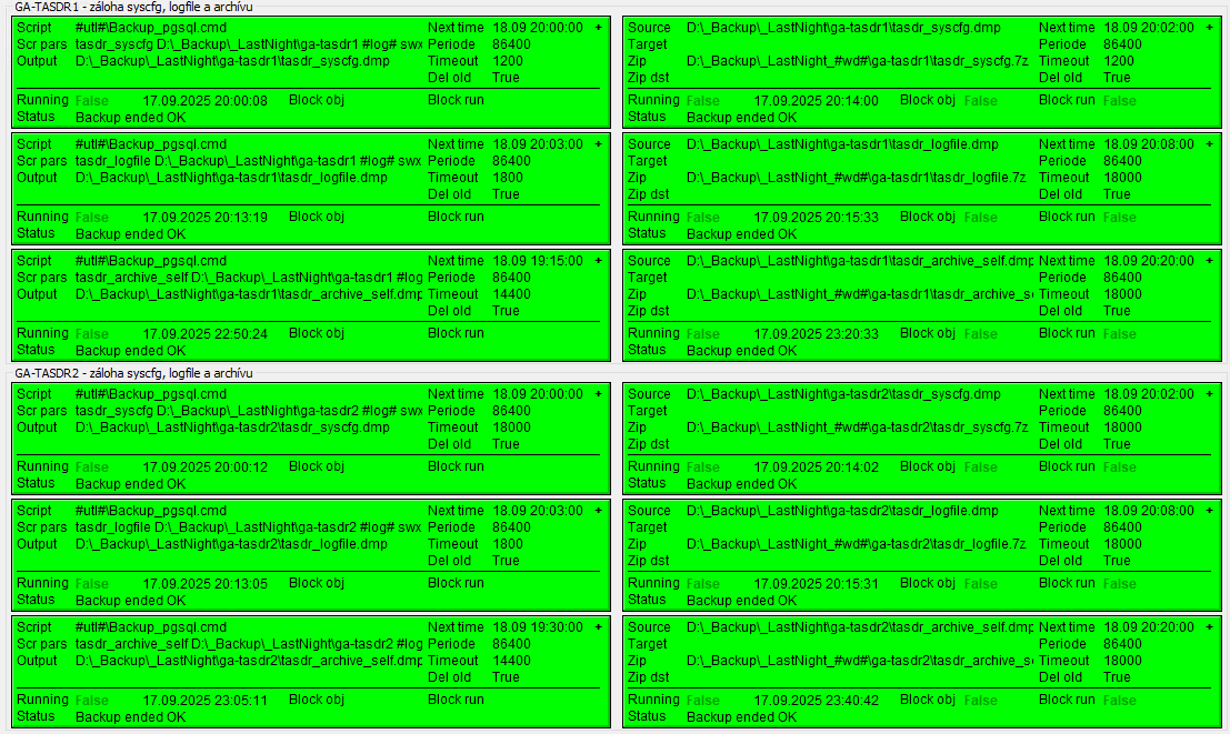 Backups of Syscfg/Logfile databases are configured as Windows scheduled tasks on individual application servers. The configuration database and logging database (PostgreSQL) are backed up.