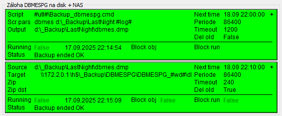 Daily backups are stored to D:\_Backup\_LastNight, and also copied to D:\_Backup\_LastNight_1, 2, ... 7, so the last 7 daily backups are available.