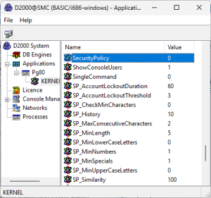Password policy is configurable using system parameters. Though single sign-on is supported by D2000 (on Windows/Linux), currently it is not configured; all authentication is performed by the D2000. Currently, parameter SecurityPolicy=0, which means the advanced security policy (password length, number of numbers/special characters, etc) applicable during password change is not enforced. Also, password expiration is not configured for any user. We do not use a domain name for login.
