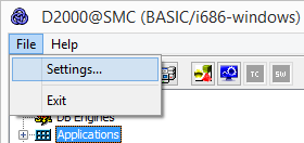 In the D2SMC menu it is possible to open a dialog with D2000 instance settings: