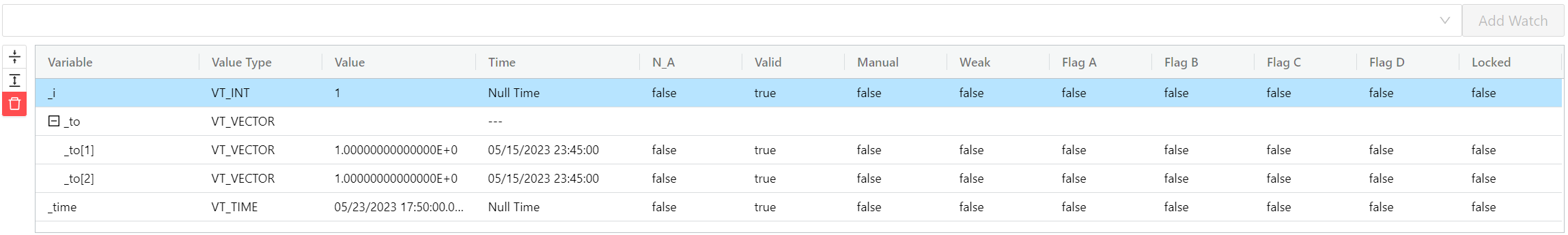 The monitored variable/group of variables can be removed from the list with the help of a popup menu. The value can be changed directly in the list of watched variables.