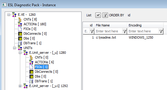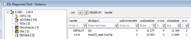 Reset counters – resets the counters in the lists of CNTs, ACTIONs, DbConnects, Dbs, and DbTrans (in the text below).