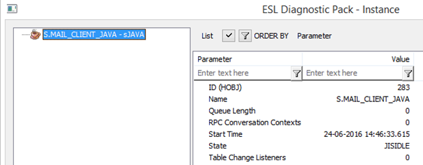 | State | Init_Error – sJava instance failed to start due to a compiler error or an error generated by JVM when creating an instance class (e.g. failed to find the dependent classes - classNotFound java exception ...). IDLE – the request queue waiting for processing is empty and no request is processed (changing the value of object, request to execute RPC, ...). Running – the request is processed. SyncWaiting – passive waiting on finishing the synchronous action (e.g. reading data from the archive, synchronous calling the RPC, ...) during processing the request. |