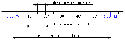 Time distance among ticks is given in seconds. There can be defined three types of ticks. The situation is shown in the following figure: