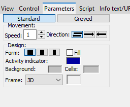 The tab allows to set the design of progress bar displayer. Some functions are not supported in dependence of progress bar type (Standard/Greyed, With object/Without object).