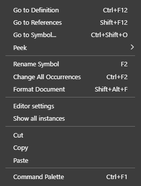 • Command Palette (CTRL + F1) - displays all available actions in the editor
