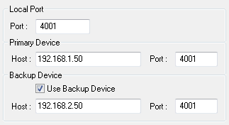 Port 4001 was chosen for the Local Listen Port. Data are sent to D2000 KOM process 192.168.0.1, which uses also the local port 4001. We recommend using the same port number within the configuration of one communication line.