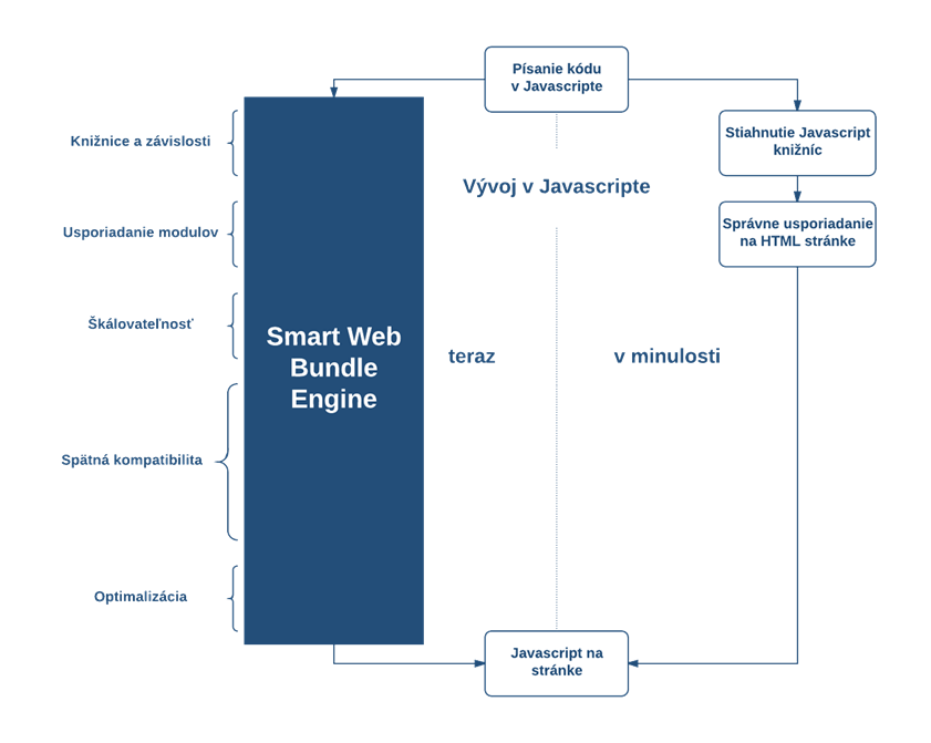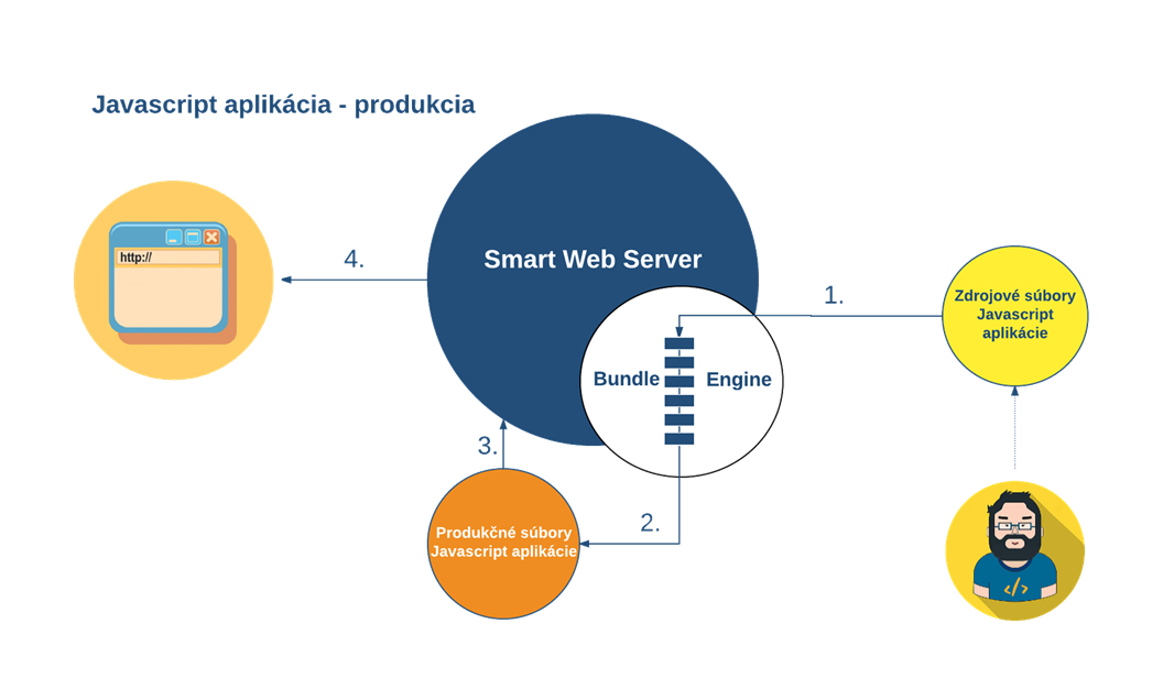 One of the main aims of the SmartWeb platform is also the support of the Javascript applications' development. That is why over this platform, a programmer does not have to configure, install nor integrate any tool that transforms a source Javascript code into a final form interpreted by a browser. This is automatically realized by a special module of the SmartWeb platform - Bundle Engine.