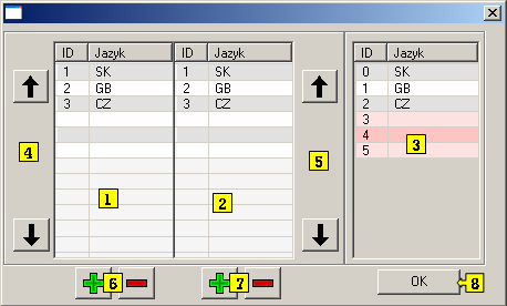 4 Moves a selected language in list 1 up /down.