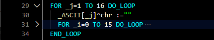 - Zbaľovanie/rozbaľovanie častí skriptu ako je: telo procedúry, BEGIN-END, IF-ELSE, IF-ELSIF, IF-ENDIF, FOR-END_LOOP... Ikony pre zbalenie/rozbalenie sa nachádzajú napravo od čísla riadkov, pričom ikony pre zbalenie sa zobrazia len v prípade ak presunieme kurzor nad túto časť editora.