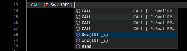 - Ak je pred kurzorom text začínajúci "_", sú navrhované premenné (lokálne, globálne a premenné schémy ak ide o skript schémy), pričom zoznam s návrhmi je filtrovaný na základe textu pred kurzorom