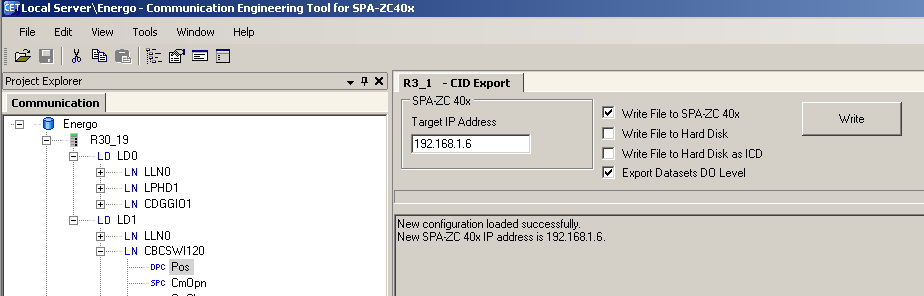 Poznámka pre ABB SPA-ZC 400: pri pridávaní objektov do datasetu (v nástroji Communication Enginering Tool for SPA-ZC40x) je nutné zaškrtnúť voľbu "Export Datasets DO Level", aby sa celý objekt (napr. Pos) pridal ako jedna štruktúrovaná premenná (v opačnom prípade sa pridajú jeho komponenty ako nezávislé položky reportu, napr. Pos$stVal, Pos$q, Pos$t).