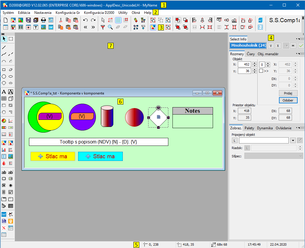 Prostredie procesu D2000 GrEditor pozostáva z týchto základných časí: