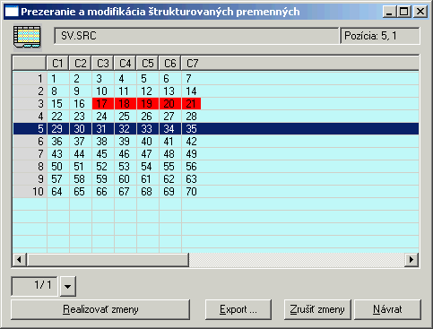 Hodnoty lokálnych štrukturovaných premenných _src a _dst pred vykonaním akcie TRANSROWTOCOL _src[3]^C3, _dst^C3: