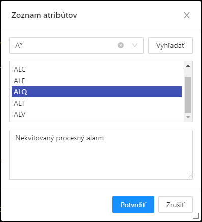 Po výbere atribútu zo zoznamu a stlačení tlačidla Potvrdiť sa atribút vloží na aktuálnu pozíciu kurzora.