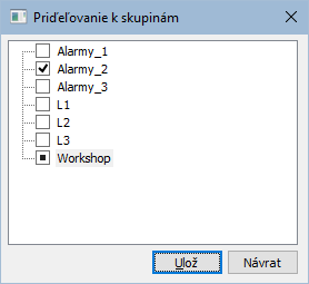 2. V zozname objektov označte objekty, ktoré chcete zaradiť/vyradiť do/z logických skupín.