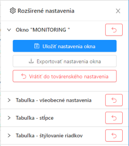 Rozšírené nastavenia monitorovacieho okna