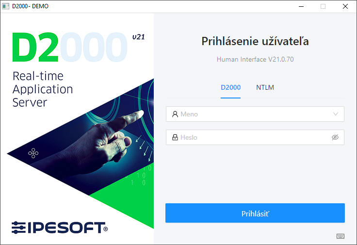 Prihlasovacie okno sa automaticky otvorí po štarte procesu D2000 HI s menom naposledy prihláseného užívateľa.