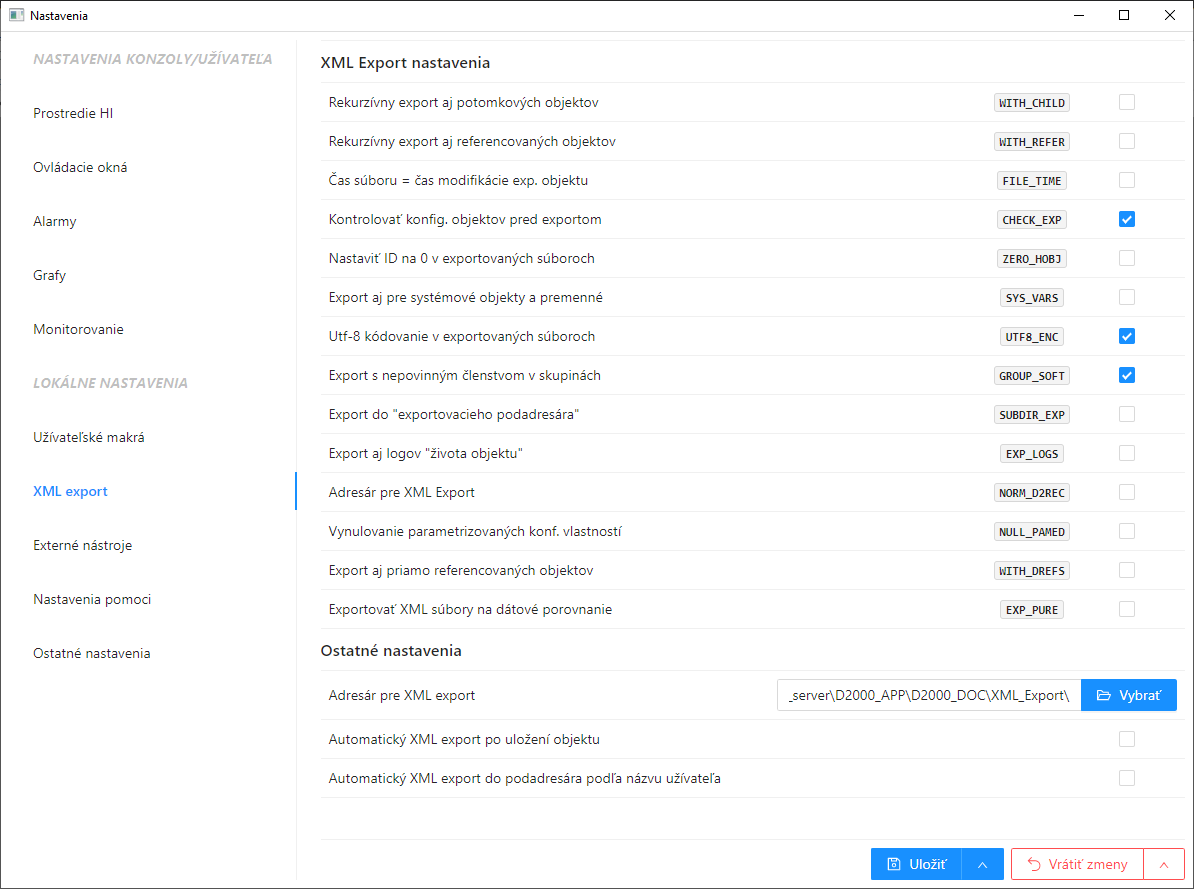 - D2000 HI - položka hlavného menu Systém \ XML Export nastavenia ...