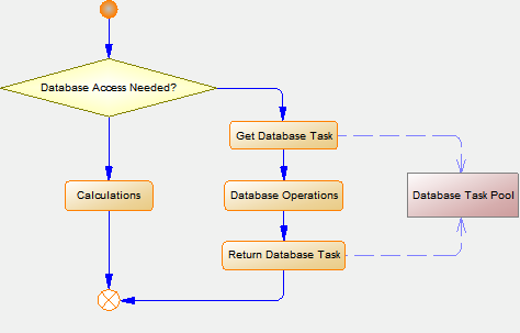 Databázové vlákno sa používa len vtedy, keď je potrebné spojenie s databázou a získava sa z poolu databázových vlákien.