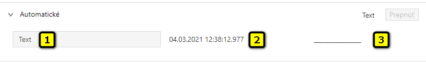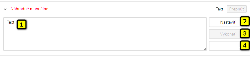 | 1 | Vstupné políčko na zápis náhradnej hodnoty (textu) objektu. |