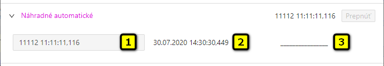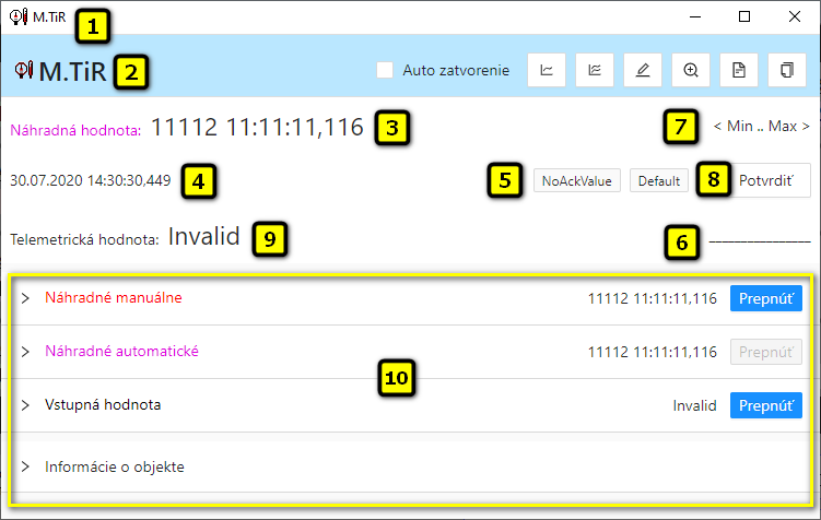 : Ak je objekt v stave Náhradná hodnota (pozri záložky Náhradné manuálne alebo Náhradné automatické) zobrazí sa text Náhradná hodnota.