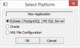 V okne vyberte DB platformu "Sybase | PostgreSQL | MS SQL Server"