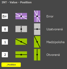 • Hodnota parametra nastaví farbu klapky, napr. pri alarmových, stavoch, resp. pri varovaniach - podla definície farieb v zobrazovacej palete.