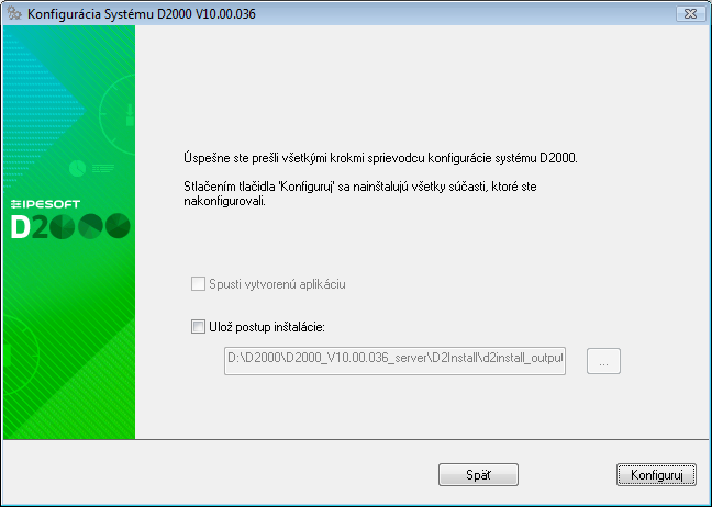 Výsledná konfigurácia sa ukladá v každom prípade (či sa užívateľ pre uloženie rozhodne, alebo nie) do priečinka D2Install v cieľovom adresári inštalácie inštancie.