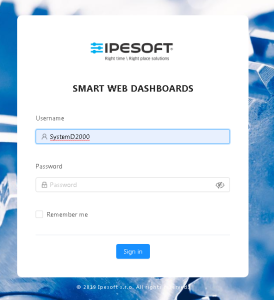 v súbore /opt/d2000/app/myapp/application.properties a následným reštartom je možné vypnúť používanie Javy a zmenšiť tak pamäťovú náročnosť kernela (114 MB → 96 MB podľa výstupu príkazu "ps aux --sort -rss")Aplikácia myapp obsahuje aj tenkého klienta na bežiacom web serveri. Ku aplikácii sa dá pripojiť cez web prehliadač na adrese http://<ip_adresa_raspberry>. Je nutné zadať štandardné meno a heslo a kliknúť na tlačidlo Login: