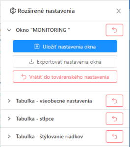 Rozšírené nastavenia monitorovacieho okna