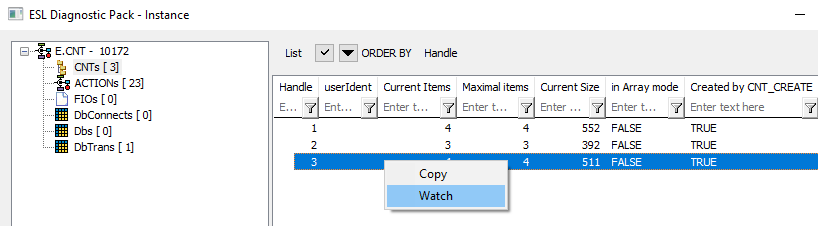 Voľba Open Detail otvorí detailný pohľad na danú inštanciu (ESL Diagnostic Pack – Instance).