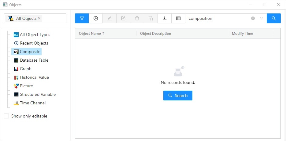 Display/hide the filter/list for sorting objects in the left part of the dialog window. | |