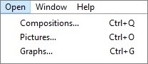 After selecting an item (Compositions or Graphs) from the menu, the following submenu appears: