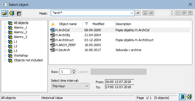 Note: Values of one archived object may be also exported from the dialog box for historical value representation - the button Export.