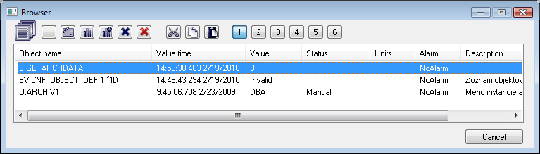3. It opens a list of objects that allows to add selected objects into Browser or open their control windows .