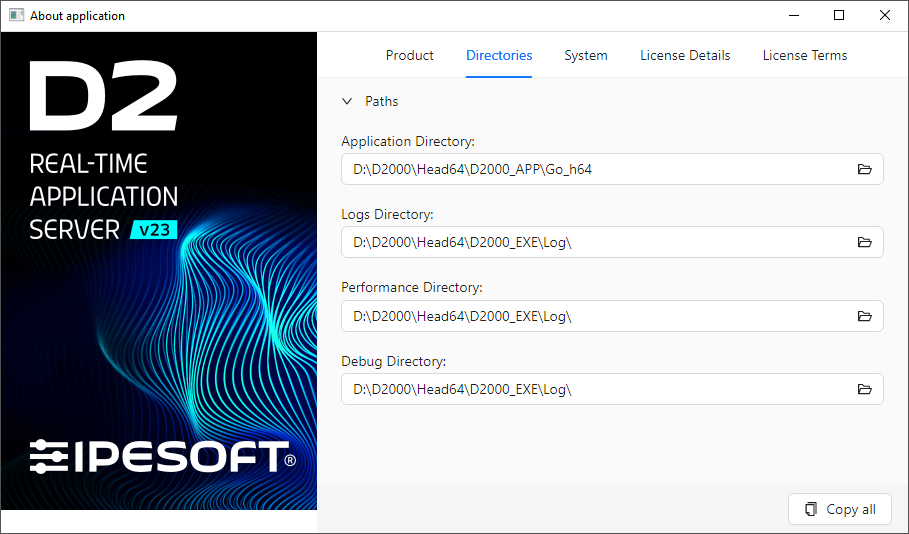 Directories - Information and paths of defined application directories
