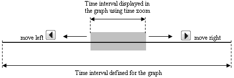 The following buttons will appear in the graph window after definition of a new range of the time axis. The buttons and allows to move the time axis left and right and the button returns the time axis back to the previous time close-up view.