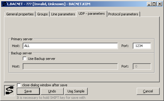 Either the number of a backup UDP port on which the D2000 KOM process should listen or a backup UDP port number on which a partner computer listens (see the description of parameter Backup server - Host).