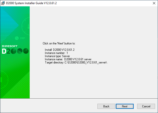 Warning: If there are one or more instances of the D2000 system on the computer, there will be a window for instance administration preceding this one.
