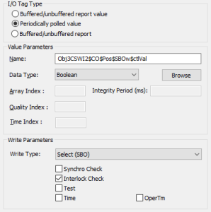 OperTm - if the option is checked, the optional item $operTm is also written to (the value 0 is written) for the SelectWithValue/Operate/Cancel write types. The $operTm item is always written for the TimeActivatedOperate write type (time of the written value).