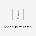 Priložený ZIP obsahuje konfiguráciu dvoch liniek a dvoch staníc s MODBUS Client/MODBUS Server protokolom, ktoré komunikujú cez TCP (MODBUS Server počúva na TCP porte 9999). Dáta zapísané cez jednu linku sú prijaté cez druhú linku. Na každej linke sú nakonfigurované 4 merané body (Float, s adresou 3.0, Signed s adresami 4.0 a 4.1 a Bool s adresou 1.0). Hodnoty meraných bodov MODBUS Servera sú ovládané systémovou sekundou (Sec) a používajú lineárnu konverziu (Float delenie 1000, Signed s adresou 4.0 násobenie 10). Hodnota meraného bodu Bool je ovládaná počítaným bodom P.TrueFalse, ktorý mení hodnotu True/False každú sekundu.