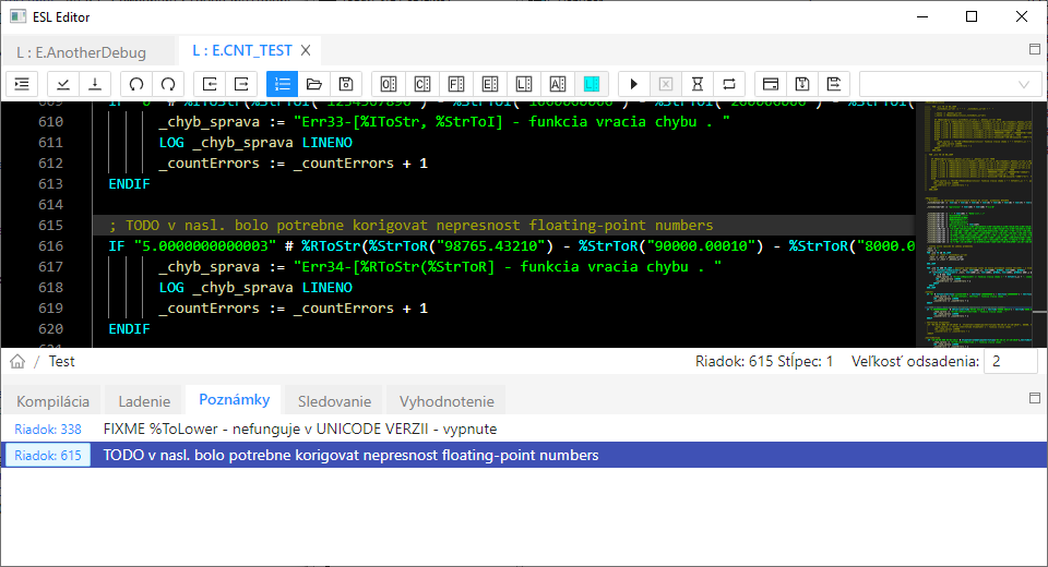 Stránka: Zobrazenie poznámok v ESL editore